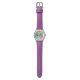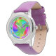 Leuke Groene Cartoon Dragon Rainbow Colours Polshorloge voor kinderen met aanpasbare naam "Kimberly". Een schattige groene cartoon draak en regenboog kleuren rand met kleurrijke nummers 1 tot 12 horloge met paarse band. Dit super schattige kind draak wistwatch voor kinderen is volledig aanpasbaar en personaliseerbaar, voeg jouw naam, teksten en afbeeldingen toe! Een geweldig drakencadeau voor de grote kleine draak fan!