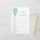 Maak je sekseneutrale baby shower extra leuk met dit schattige "Baby Word Scramble"-spel, met een waterverf olifant in een zacht mintgroene ballon. Gasten zullen dol zijn op het ontrafelen van baby-gerelateerde woorden in deze boeiende activiteit, ideaal om iedereen te vermaken. Bestel de jouwe vandaag en creëer een leuke, gedenkwaardige ervaring voor uw gasten!