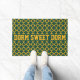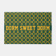 Onze slaapdeurmat versierd met een groen en goudpatroon en jouw tekst in schooltype belettering. Uitzicht onze volledige lijn van aangepaste producten thuis in onze Zazzle winkel.