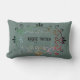 Een gepersonaliseerd groen Hedge Witch lumbaal kussen. Een verjaardagscadeau of een idee voor een huisdecoratie.