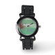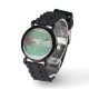 Silver strap mode horloge met "Green Ocean Water" fotografie, met MoonDreams Music logo