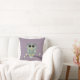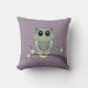 Aangepast Amerikaans MoJo Sierkussen 20 x 20 inch heeft een groene uil op een ledemaat met bloemen en een paarse pokkenpatroonachtergrond.