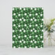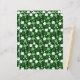 Een witte shamrock print op een donkergroene achtergrond.