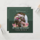Donkere groene bruiloft welkomstplein Sticker Donkergroene bruiloft welkome vierkant sticker om je bijtende donkere tropische bruiloft te voltooien. Met zijn boze waterverf grof naar zijn moderne boho winterbloemen, inclusief protea, dahlia en gedroogde lotus, zal het ontwerp zeker uw humeurig, minimalistisch groen en wit thema afzetten. Verander de tekst en voeg een foto toe om het uw te maken. Ook, zorg ervoor om door de rest van het collectie te kijken om coördinerende punten te vinden die uw volledige bruiloft samen zullen brengen!