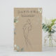 Greenery Foliage raadt het Vrijgezellenfeest van de Dress op een Kraft effect achtergrond. De tekst "Raad de jurk" wordt geschreven in een Script-lettertype met gekoppelde hartstochten - toetsen. U kunt de achtergrond Kraft-structuur voor zwarte en witte kaarten verwijderen. Je tekent de stijl van de trouwjurk, de dichtstbijzijnde versie van de eigenlijke jurk van de bruid.