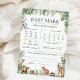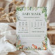 Maak je baby shower nog specialer met deze Whimsical Woodland Animals Baby shower Predictions Kaart! Ontworpen met schattige bosdieren, waterverf eucalyptusgroen en rustieke boscharme, laat dit spel gasten plezier hebben met het raden van details over de komst van de baby, zoals geboortedatum, gewicht, oogkleur en meer. Het is een gedenkwaardige herinnering voor de aanstaande moeder, die de liefde en opwinding van deze prachtige reis vastlegt. Met een elegante kalligrafie typografie, zachte waterverf-elementen en een boho-geïnspireerd natuur-thema, past deze baby showers voorspellingskaart naadloos bij uitnodigingen voor babydouches in het bos, feestdecoraties en briefpapier. Of je nu "It's a Girl" viert of een genderneutraal baby shower organiseert, deze charmante kaart voegt een eigentijdse, grillige touch toe aan je evenement. Perfect voor boho, rustieke en grillige baby showers, deze voorspellingskaart is een leuke en interactieve manier om gasten te betrekken bij het creëren van een gekoesterde herinnering voor de toekomstige ouders.