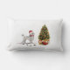 Een vrolijke grijze poodle kijkt met anticipatie op de versierde kerstboom. Gevuld met licht en siervoorwerpen met cadeaus onder de boom, wacht opwinding! Een cadeautje om met kerst te gaan prettige feestdagen en een gelukkig nieuw jaar!