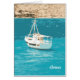 Witte jacht op achtergrond van blauwe zee in Griekenland, schildereffect.