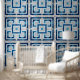 Grieks sleutelmozaïek - Blauw marmer en parel Behang