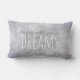 Dit grijze citaat gooit kussen heeft in uw dromen in witte tekst op geschilderde zacht grijze achtergrond voor huisdecor en accent geloofd. Het schilderde achtergrondauteursrecht Ann Powell.