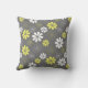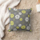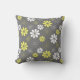 Een wit patroon van gele en witte, melkvormige bloemen, bevindt zich op een grijze achtergrond.