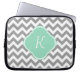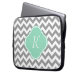 Grijs en wit Chevron Stripe Aangepast monogram Laptop Sleeve