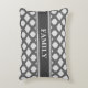 Moderne grijze en zilverdiamant en zeshoekig geometrisch patroon Lumbar Sierkussen. De tekst van de familie kan worden gepersonaliseerd.