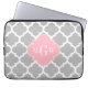 Grijs wit Marokkaans #5 Roze 3 Initiaal monogram Laptop Sleeve