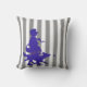 Grey & White Stripe Kind & Hond Blauw Silhouet gooi kussen Grijs en wit kleur streep gooi kussen met een meisje lopen met een hond spelen met een bal blauw silhouet. Rustiek ontwerp geweldig voor het versieren van baby of kinderkamer