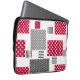 Grijsrode stip patchwork op witte achtergrond laptop sleeve