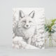 Grijswaardenkleurplaat met een vos die in sneeuw in een winterbos staat. Kies het papier voor uw favoriete medium. Ik stel het gerecycleerde papier voor kleurpotloden, pastels en houtskool voor.