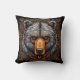 Zeer gestileerde illustratie van een berenkop, weergegeven met ingewikkelde details en levendige kleuren. De vacht van de beer is voornamelijk grijs met hints van oranje rond zijn snuit, wat hem een opvallend uiterlijk geeft. Zijn ogen zijn intens en boeiend en dragen bij tot de krachtige uitdrukking van het dier. De beer is omringd door een sierlijke decoratieve rand, die artistieke flair en rijkdom aan de compositie toevoegt. De achtergrond is zwart, wat het totale drama en de diepte van het stuk versterkt, waardoor de beer prominent naar voren komt. De combinatie van kleuren en ingewikkelde ontwerpen creëert een visueel boeiend kunstwerk dat kracht en majesteit overbrengt.