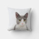 Een zoete en liefdevolle grijze en witte tuxedo kat grijpt deze zachte, rechthoekige kussen. Kijk eens naar die schattige roze neus!! Hij zal altijd graag televisie met je kijken.