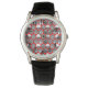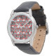 Dit horloge van mannen heeft een geometrisch ontwerp van ovalen met verschillende grijze patronen in elke helft allemaal op een gebied van rood.