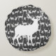 Dit hertenontwerp rond kussen is ideaal voor iedereen die houdt van herten, dieren, wilde dieren en leuke design! Beschikt over verschillende kleine rustieke witte herten silhouetten op een achtergrond van donkergrijs met een groot wit silhouet doe op de voorkant, bok op de rug. Dit hertenkussen is perfect voor de woonkamer, het hol, de familiekamer, de familiecabine op het meer, en natuurlijk maakt het een groot geschenk.