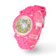 Grijze kitty kat zitten in bloemen horloge