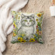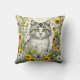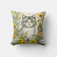 Folk art style ai art met een schattige grijze en witte kat zittend in gele en witte bloemen.