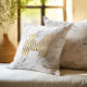 Een goed stevig kussen dat uitstekend past in ons Zen, maar toch kleurige interieur en een ander kussen van dezelfde ontwerper. Mooie kleuren, warmer dan op de afbeelding.
