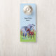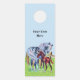 Deze papieren deurhanger heeft een grijs moederpaard in het gras door een houten hek met haar bruine baby colt onder een blauwe lucht. Pas jouw tekst aan de voor- en achterkant aan met de sjabloon.
