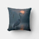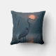 Een grijze reiger staat gracieus in ondiep water omringd door hoog riet terwijl de roze maan een warme gloed over het tafereel werpt
