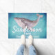 Deurmat Custom Nautical waterverf Grey Whale op een Kustturquoise blauwe achtergrond. Gepersonaliseerd met de familienaam en het adres.