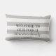 Moderne grijze witte strepen welkom in ons veranda script, familienaam outdoor kussen U kunt het personaliseren en uw eigen tekst en naam toevoegen.