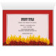 Barbeque grill over vlaming charcoal, scroll banner with custom text over crossed tongs and brush.