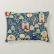 Een grillig kussen met schattige kleine Scandinavische huizen omgeven door bomen, bloemen en vogels. Deze vrolijke Scandinavische folk art stijl wordt gedaan in marine, turquoise, rood en geelbruin en zal zeker uw gezellige huis opfleuren.