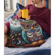 Dit kleurrijke ontwerp is voorzien van een schattige aqua blauwe uil zittend op een boomtak met de maan en sterren op de achtergrond, allemaal op een marineblauwe achtergrond.