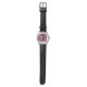Dit geweldige horloge kenmerkt een afbeelding van de Reaper van de Grim gecreeerd gebruikend vectoren. Hij houdt zijn scythe in zijn bonige witte hand. Zijn paarse zonken en duizeligheid zijn alleen zichtbaar onder zijn zwarte luik.