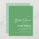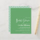 Vier de bruid-to-be met deze charmante bruidsdouche-uitnodiging met een frisse groene voorkant en een geometrische pattereerde achterkant die een speelse toets toevoegt. Perfect voor diegenen die een elegant maar budgetvriendelijk evenement plannen, deze uitnodiging combineert eenvoud en stijl moeiteloos. Of het nu gaat om het organiseren van een bijeenkomst in de achtertuin of een officiële viering, het is een ideale keuze voor moderne verhuurders die houden van persoonlijke gegevens met een pop van kleur.