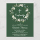 donkergroene bevestigingsbrochure met handgetekende illustraties van de waterverf van delicate witte bloemen, bladeren en bladeren. Houd er rekening mee dat enveloppen NIET bij dit ontwerp zijn inbegrepen. Als je enveloppen nodig hebt, controleer je collectie of koop je deze los van de markt.