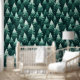 Dit eenvoudige, klassieke patroon is voorzien van een groen dennenbos bedekt met sneeuw.