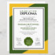 Hogescholen, universiteiten, middelbare scholen en instituten voor hoger onderwijs kunnen verfijning toevoegen aan bosdiploma's met dit moderne, eigentijdse ontwerp, dat elegante belettering bevat op groene, gouden en witte achtergronden van het afstuderen. Pas aan met de gegeven- en familienamen van de student, de faculteitsnaam, de naam van de school/hogeschool/universiteit, de locatie en datum van het afstuderen, maximaal vier (4) ondertekenaars en een academische logo of slogan. Kleuren en lettertypen kunnen naar wens worden gewijzigd. Ontwerp © W.H. Sim, Alle rechten voorbehouden. Zie meer op zazzle.com/expressionsoccasions