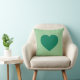 Dit kussen heeft een brigade van Kelly Green Hearts aan de ene kant en een groot eenkeleggroen hart aan de andere — beide op een lichtgroene achtergrond.