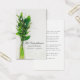 Geef uw gasten die de Celebration of Life Memorial van uw vertrokken de elegante Greenery in Vase Funeral Service Prayer Kaart bijwonen. Personaliseer het met de naam van de overledene, geboorte- en sterfdata en gedicht of gebed op de rug. Deze aangepaste botanische death tribute-kaart toont een digitaal geschilderde bloemenfoto van bladeren van groen plant op de stengel in een glazen vaas met een witte achtergrond.