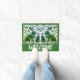 Mijn uitziende konijnenkunst met schuiffoliage, bloemen en zelfs een kleine slak nodigt je bezoekers uit met tinten van smaragdgroen op wit. "WELKOM"in een modern manuscript is in wit. Mooi, eenvoudig en elegant.