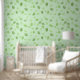 Groene bladeren Design Wallpaper met aanpasbare achtergrond kleur.
