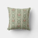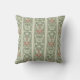 Een gooiend kussen of kussen met een nieuwe, roestbruine standaard-roestbruine staafbloemen en groenbladeren die zijn gerangschikt in spoelstrepen, met dunne groene lijnen die grenzen aan vlakke bleke groene banden.