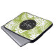 Laptophoes op maat gemaakt met een monogram. Ontworpen met een herhalingspatroon van grote palmbladeren op een olijfgroene achtergrond. Heerlijk modern en tropisch. Een zwarte cirkel met een gouden binnengrens die boven aan is gelaagd met uw persoonlijke details binnenin.