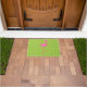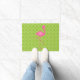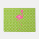 Een doormat met een illustratie van een roze flamingo over een groene quatrefolieramolachtergrond. Pas het monogram aan.