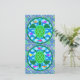 Een groene schildpad met een gevlekte schelp, tegen een blauw water/golfpatroon, met een aantal kleurrijke vissen. Cirkelvormig ontwerp met een groene rand. Extra grote bladwijzer - 8x4 - of gebruik als gewone kaarten.