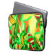Groenachtige strepen over rood afbeelding met driz laptop sleeve