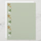 Floral letterhead met groene, beige en bruine bloemen en bladeren.